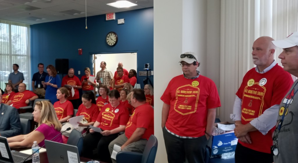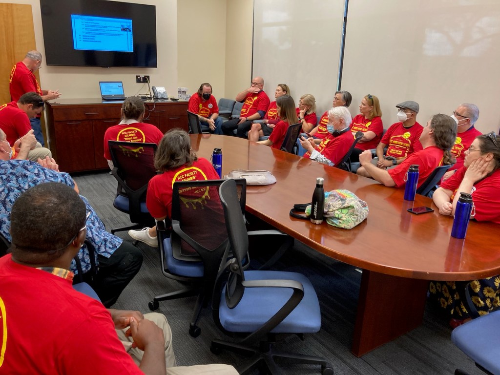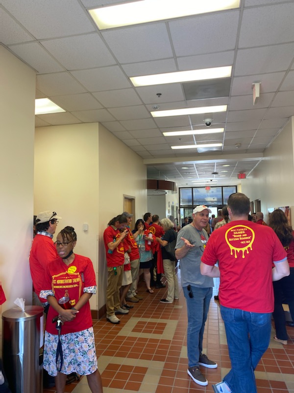 We had a great FUSA turnout at the 8/24 Board of Trustees meeting. Upwards of 70 members packed the board room and hallway–a strong show of solidarity in support of your faculty rights. Ten members spoke directly to the board, calling attention to economics and the value of faculty.